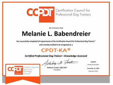 - Melanie L. Babendreier, CPDT,-ka, CTDI, CGC Evaluator